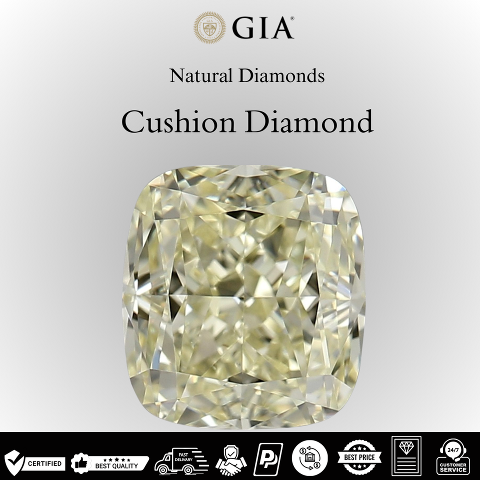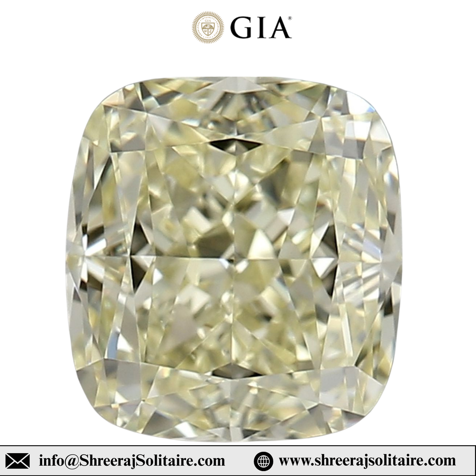 เพชรสีเหลืองอ่อนธรรมชาติ ระดับความสะอาด VVS1/VVS2 น้ำหนัก 1.00 กะรัต ทรงคุชชั่น สำหรับทำเครื่องประดับ จากอินเดีย ยี่ห้อ SHREERAJ