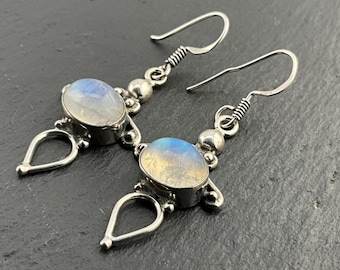 ต่างหูห้อยประดับมูนสโตนทรงสวยหรูสำหรับเด็ก ชุบทองบนเงินแท้ ประดับขอบเพชร ของขวัญสำหรับงานแต่งงาน ครบรอบแต่งงาน เครื่องประดับ
