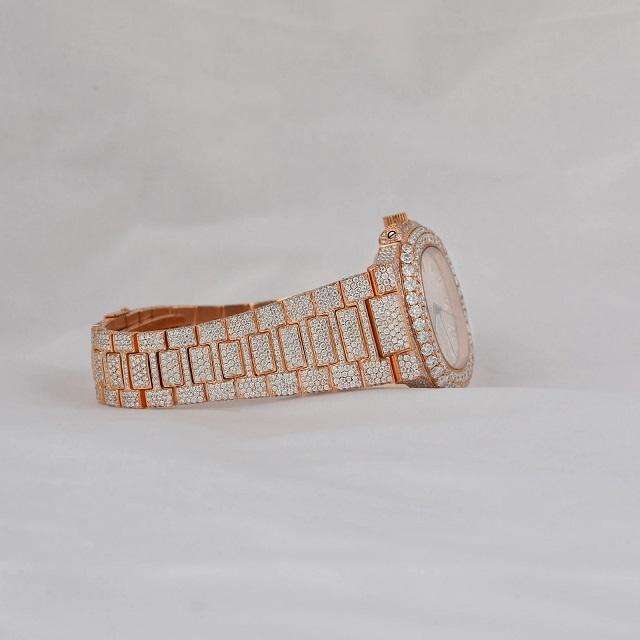 นาฬิกาข้อมือแฟนซีประดับเพชรโมอิสซาไนต์ลายการ์ตูนสไตล์โบราณ สำหรับทุกเพศทุกวัย ขนาดปรับได้ ความใสระดับ VVS ตัวเรือนสแตนเลสสตีล งานฝีมือฮิปฮอป ETA
