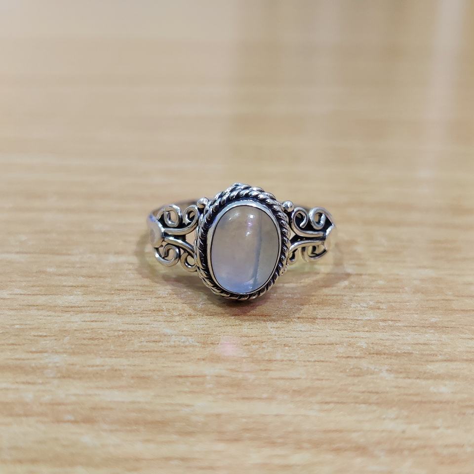 แหวนพลอยมูนสโตนแฟนซี เงินแท้ 925 แหวนแต่งงานทันสมัยสำหรับทั้งชายและหญิง