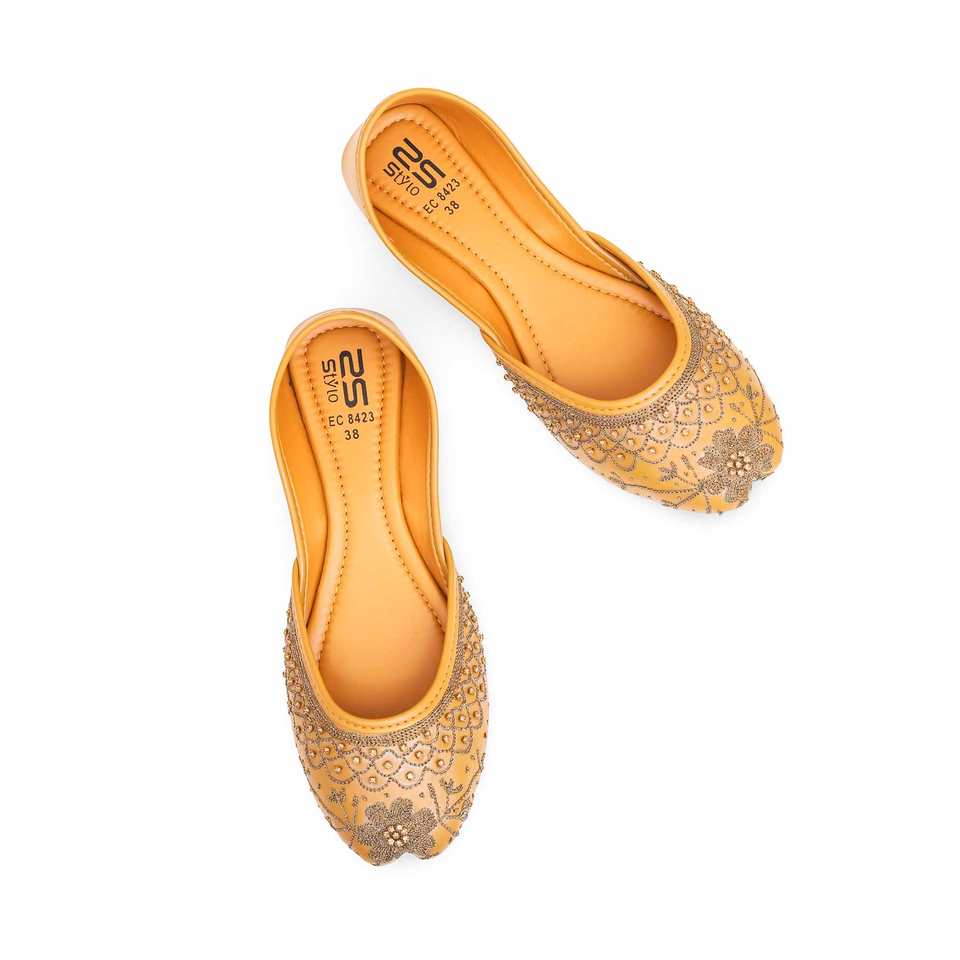 รองเท้าส้นเตี้ยแฟนซีมัสตาร์ด khusa EC8423