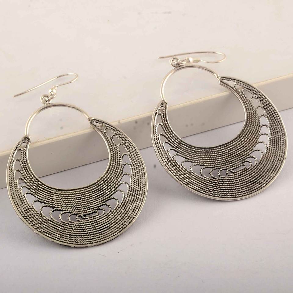 ต่างหูเงินแฟนซีธรรมดา925ต่างหูเกี่ยวเงินสเตอร์ลิงต่างหูแฮนด์เมดต่างหูเงินอินเดียสำหรับผู้หญิงและเด็กผู้หญิง