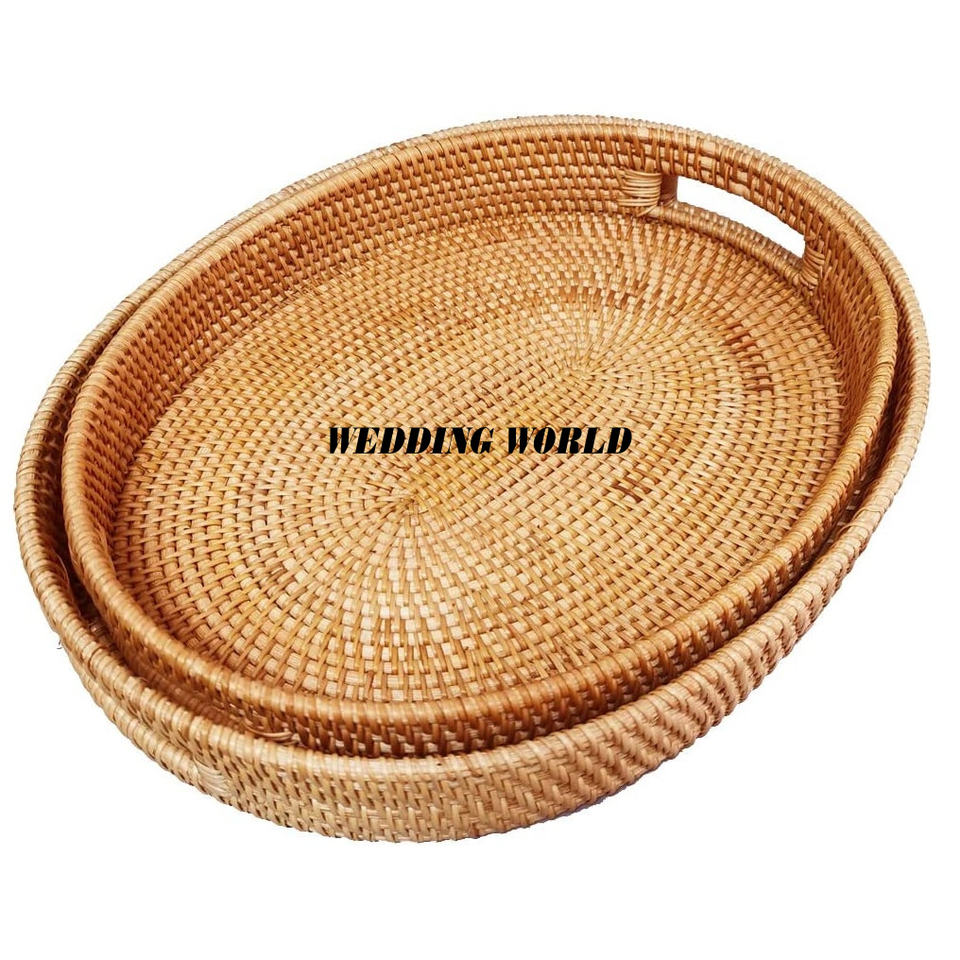 ถาดหวายแฟนซีถาดรองจานหวายสำหรับงานแต่งงานดีไซน์เนอร์งานแฮนด์เมดคุณภาพระดับพรีเมียมถาดหวาย
