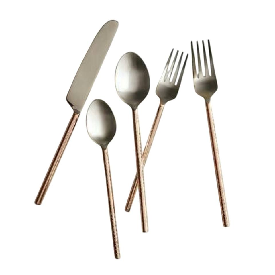 ชุดช้อนส้อมสแตนเลสสตีลสีโรสโกลด์สุดหรู ดีไซน์ลายหิน ด้ามจับทนทาน ทำความสะอาดง่าย เหมาะสำหรับโรงแรม