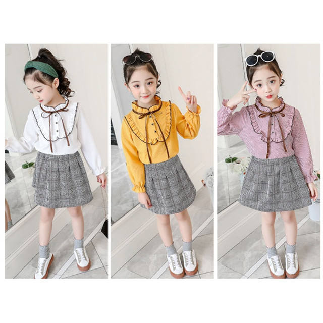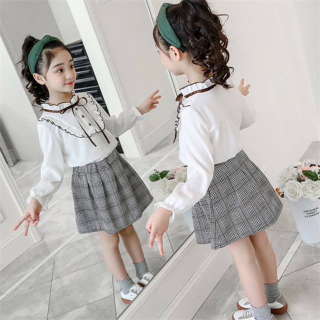 ชุดเสื้อครอปและกระโปรงผ้าฝ้ายลำลองแฟชั่นสำหรับเด็กผู้หญิงอายุ 4 ปีขึ้นไป ขายส่งชุดฤดูร้อน 2 ชิ้น