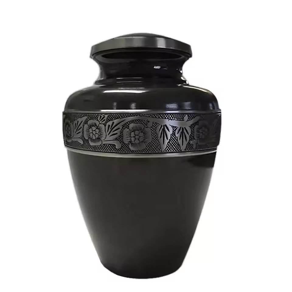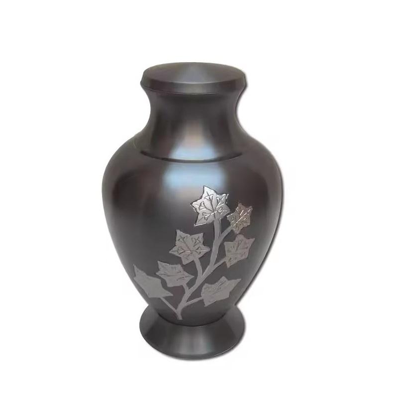 โกศบรรจุอัฐิทองเหลืองสไตล์หรูหรา แกะสลักด้วยมือ สีดำ ลายใบไม้สีเงิน สำหรับบรรจุอัฐิของมนุษย์ โกศสำหรับผู้ใหญ่ ลดราคา