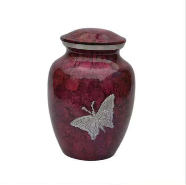 โกศใส่เถ้ากระดูกโลหะงานแกะสลักด้วยมือสีส้มลายใบไม้สีเงินสำหรับขี้เถ้ากระดูกผู้ใหญ่สไตล์แฟนซี