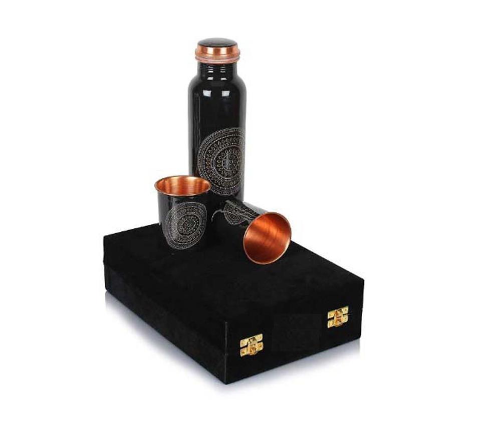 ขวดน้ำทองแดงพิมพ์ลายแฟนซีมีความทนทานและเชื่อถือได้เป็นพิเศษสำหรับการใช้งานต้านเชื้อแบคทีเรียพร้อมกล่องกำมะหยี่