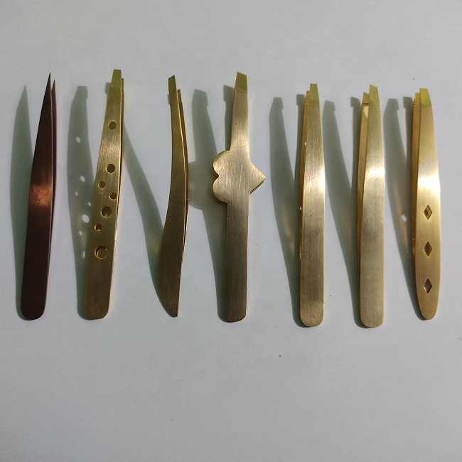 แหนบคิ้วไทเทเนียมสีทองแหนบปลายเอียงขอบสแตนเลสสีเคลือบไททาเนียมแฟนซี