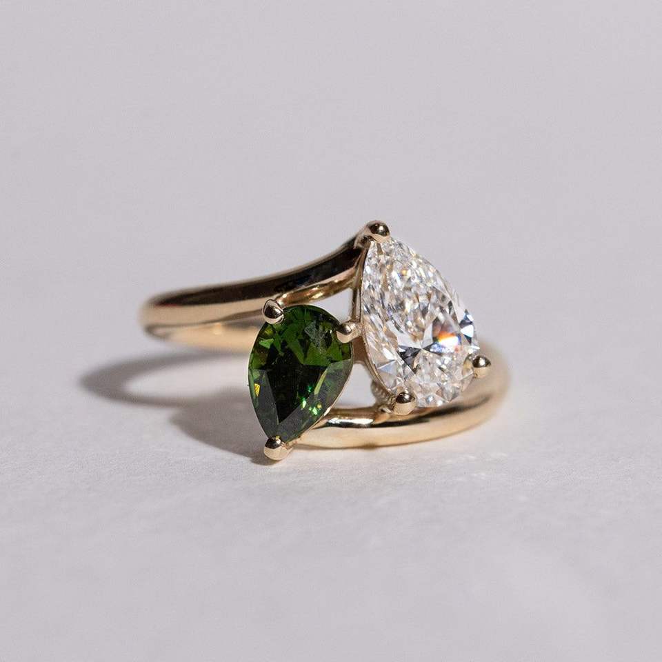 แหวนเพชรทรงลูกแพร์สีเขียวขาว 4 กะรัต CVD ประดับทอง 18K ดีไซน์เก๋ไก๋ทันสมัยสำหรับผู้หญิง รับรองโดย IGI เหมาะสำหรับงานปาร์ตี้ งานเลี้ยงตอนเย็น และงานแต่งงาน