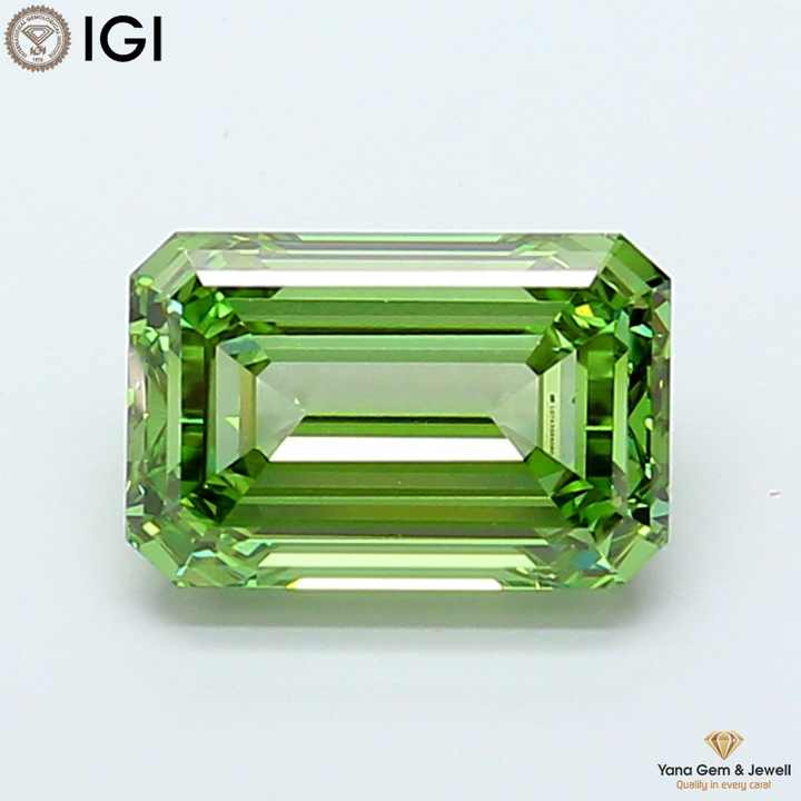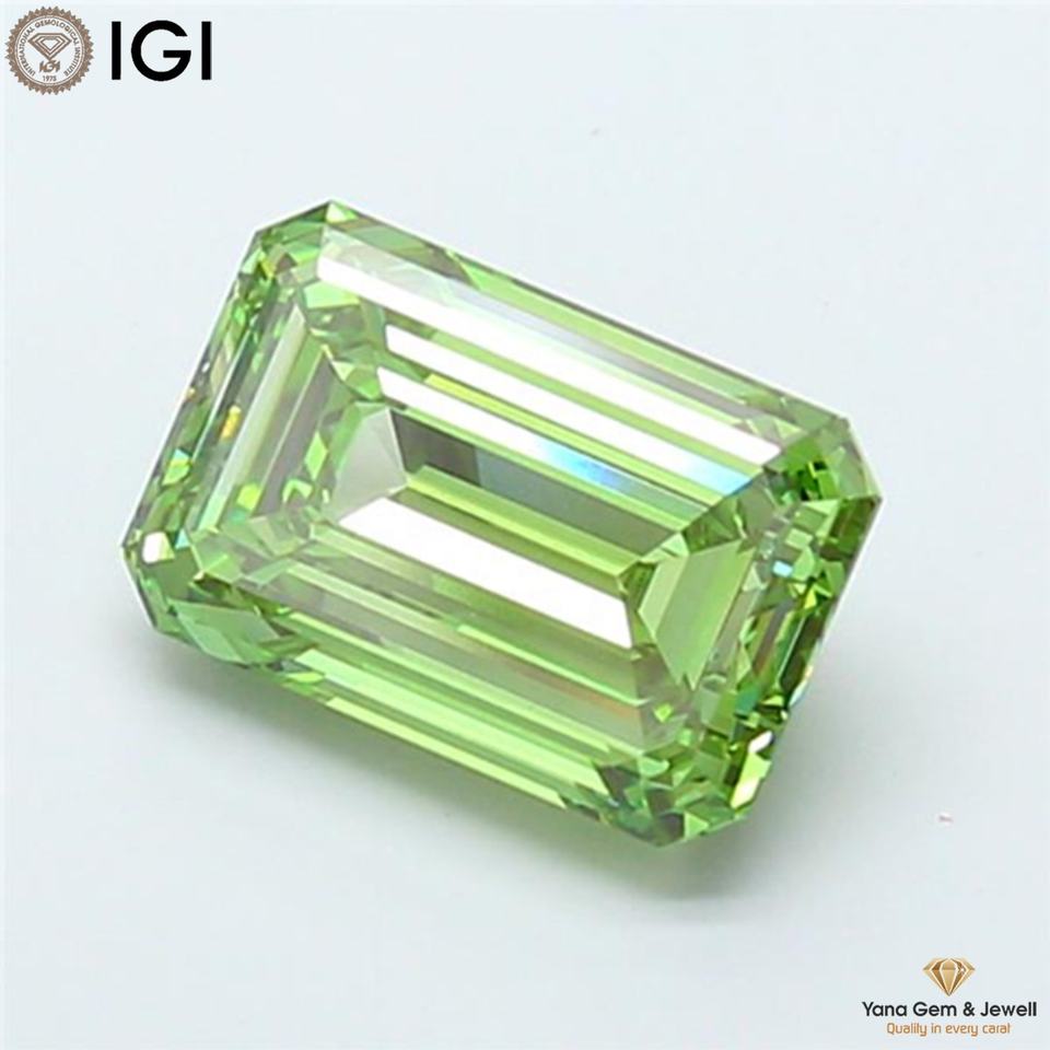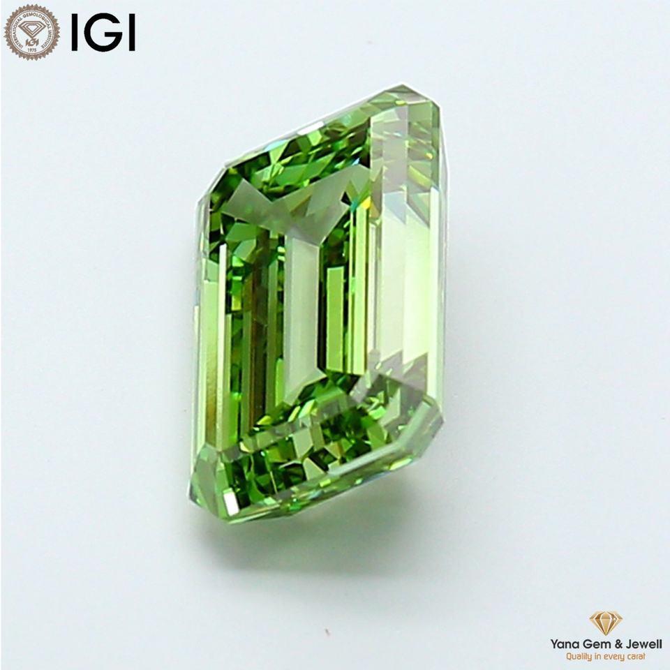 เพชรสีเขียวแฟนซีสดใส ความสะอาดระดับ VS1 น้ำหนัก 5.50 กะรัต ทรงมรกต พร้อมใบรับรอง IGI สำหรับการทำเครื่องประดับใหม่ เพชร CVD ที่เพาะเลี้ยงในห้องปฏิบัติการ
