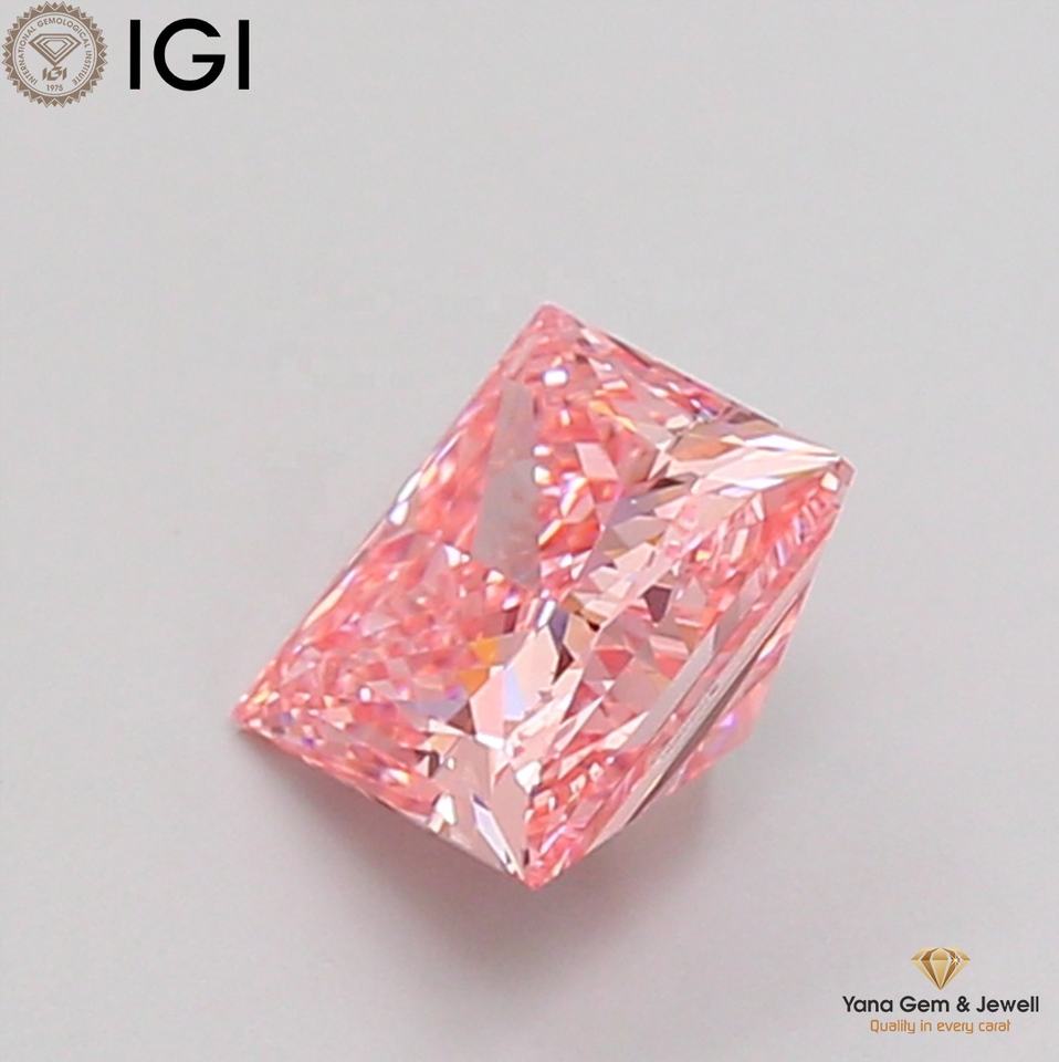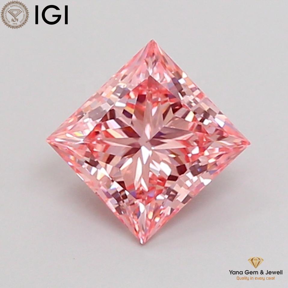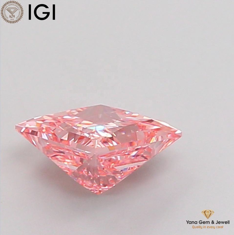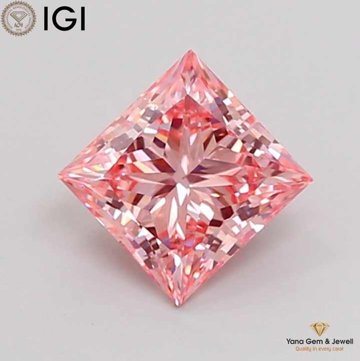เพชรสีชมพูสดใส ระดับความสะอาด VS1 รูปทรงเจ้าหญิง พร้อมใบรับรอง IGI เพชร CVD ที่เพาะเลี้ยงในห้องปฏิบัติการ น้ำหนัก 1.50 กะรัต สำหรับแหวนแต่งงานแบบคลาสสิก