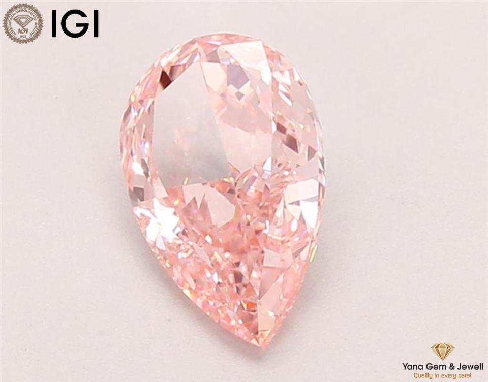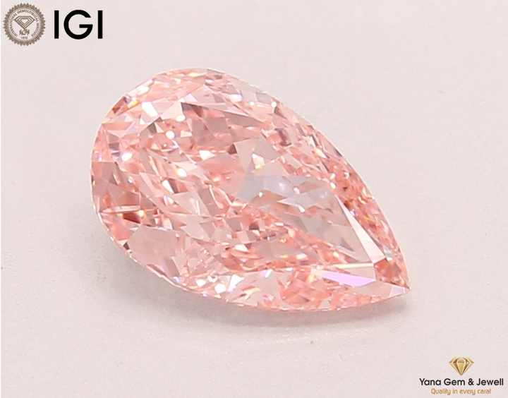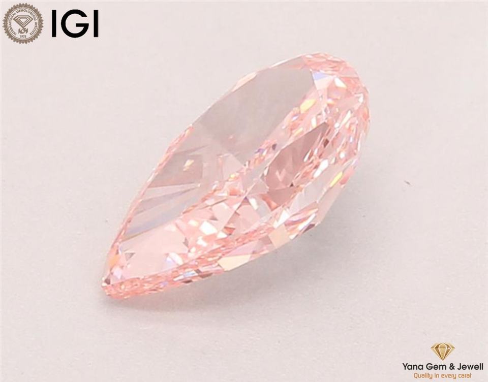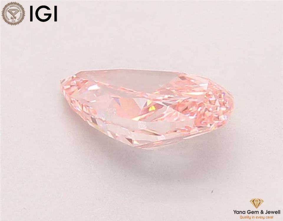 เพชรสีชมพูสดใส ระดับความสะอาด VVS2 ได้รับการรับรองจาก IGI น้ำหนัก 1.50 กะรัต ทรงลูกแพร์ ผลิตด้วยวิธี CVD สำหรับงานออกแบบเครื่องประดับตามสั่ง