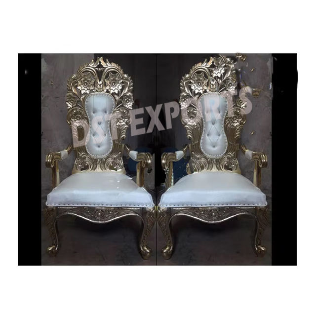 เก้าอี้งานแต่งงานสุดหรูสำหรับเจ้าสาวและเจ้าบ่าว สีขาวทองโบราณ เก้าอี้บัลลังก์งานแต่งงานสไตล์สิงโตสุดหรูสำหรับขายในสหรัฐอเมริกาและสหราชอาณาจักร