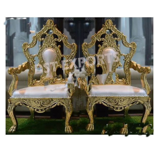 เก้าอี้คู่สำหรับงานแต่งงานเก้าอี้จัดงานแต่งงานสีขาวขัดเงาทองสำหรับเจ้าบ่าวเจ้าสาว