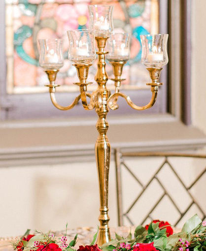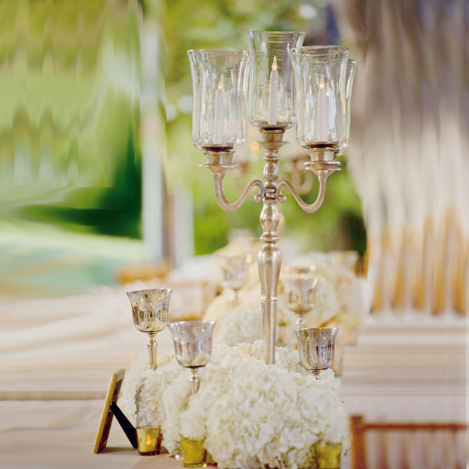 เชิงเทียนพายุเฮอริเคน5แขน,แก้วโลหะสีทองสำหรับตกแต่งงานแต่งงานแฟนซี