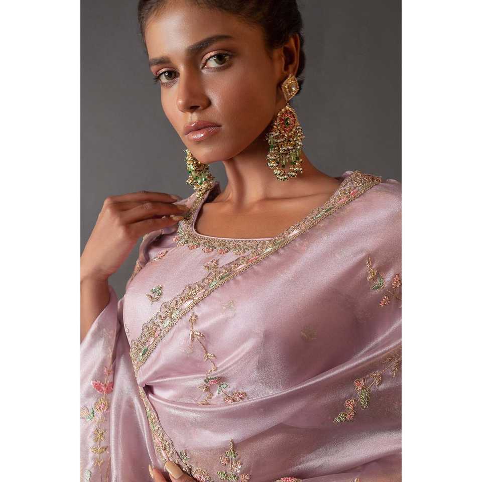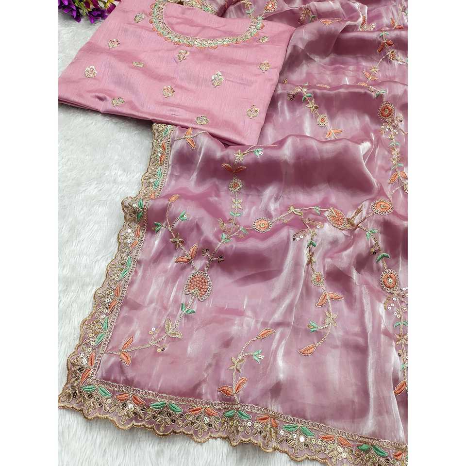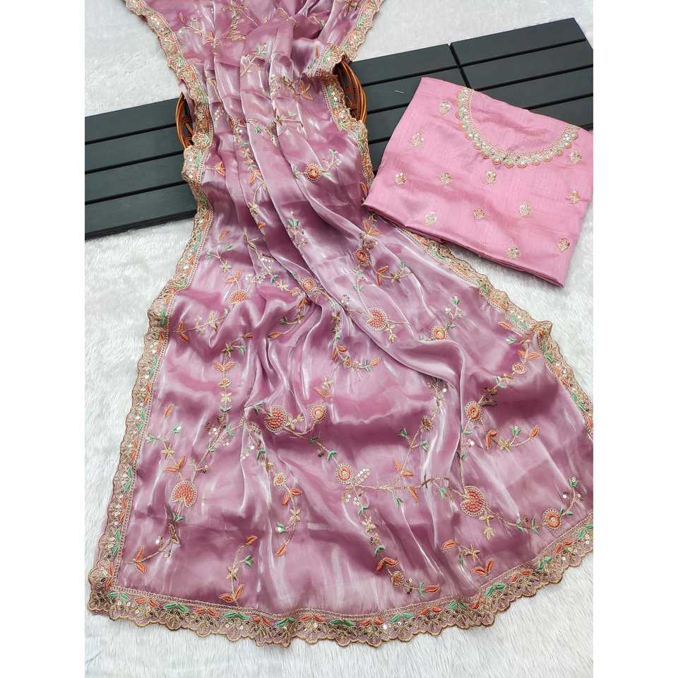 Saree งานแต่งงานแฟนซีที่มีหลาย-treads ปักเลื่อมงานเขียนโค้ด