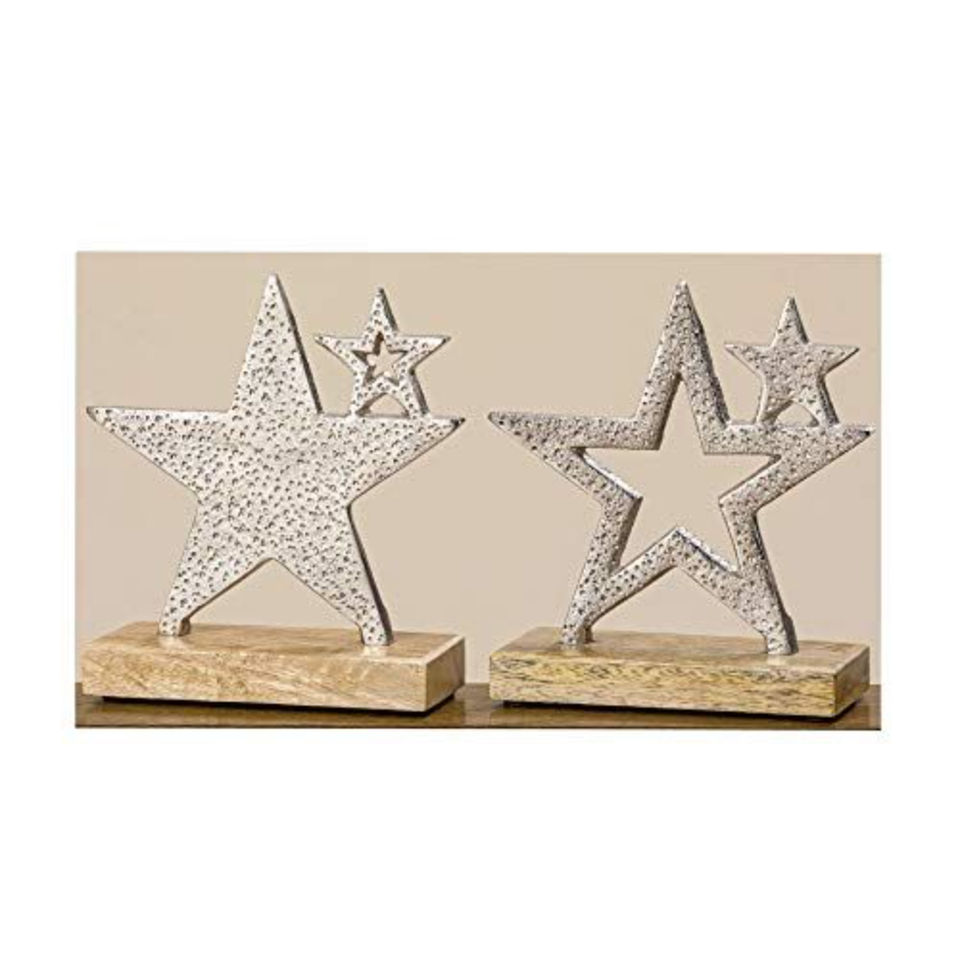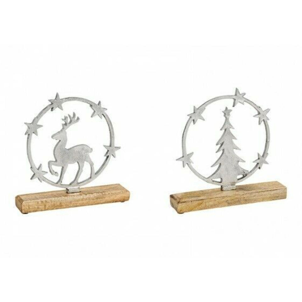 ของตกแต่งต้นคริสต์มาสทำจากไม้แฟนซีพร้อมกวางอลูมิเนียมสีเงินและเครื่องประดับทำมือรูปนางฟ้าสำหรับตกแต่งบ้านตามเทศกาล