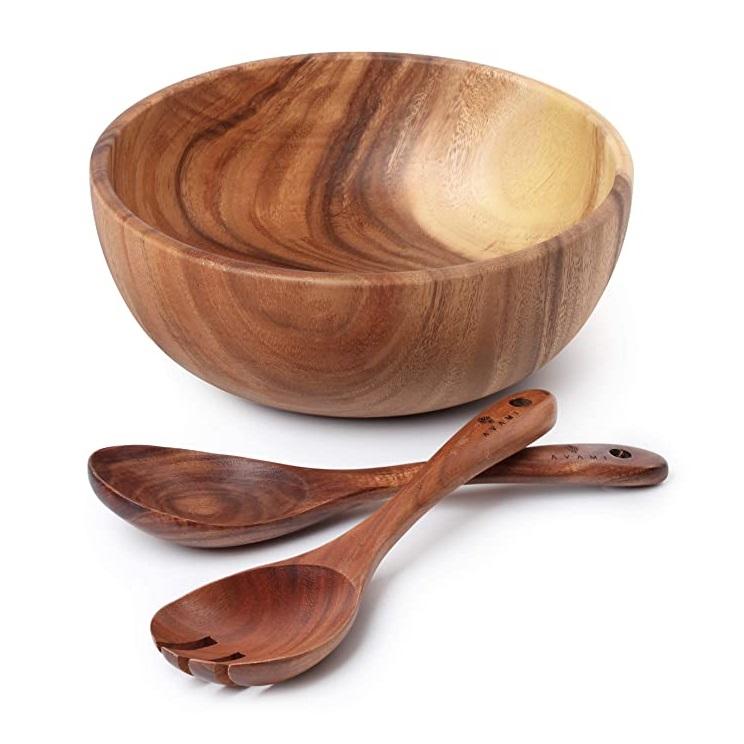 ชามสลัดทำด้วยมือชามซุปทำจากไม้สไตล์คลาสสิกชามเสิร์ฟไม้ใหม่