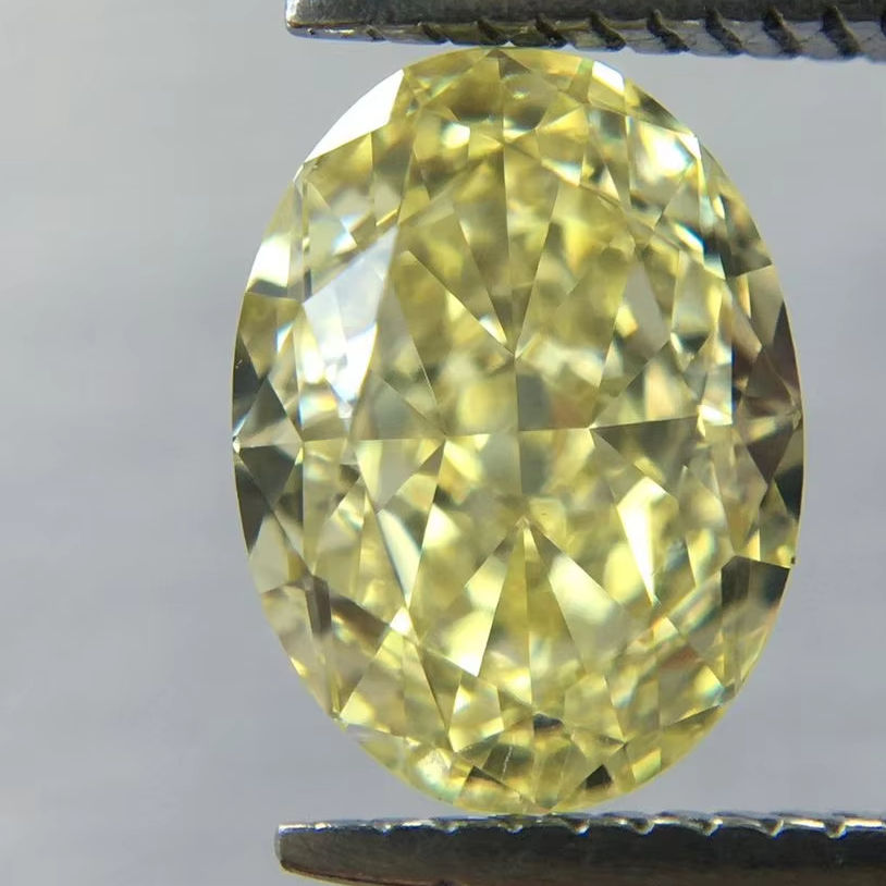 เพชรวงรีทรงหลวม VVS2เพชรสีเหลืองแฟนซี1.01กะรัตเพชรธรรมชาติที่ผ่านการรับรองจากอินเดีย