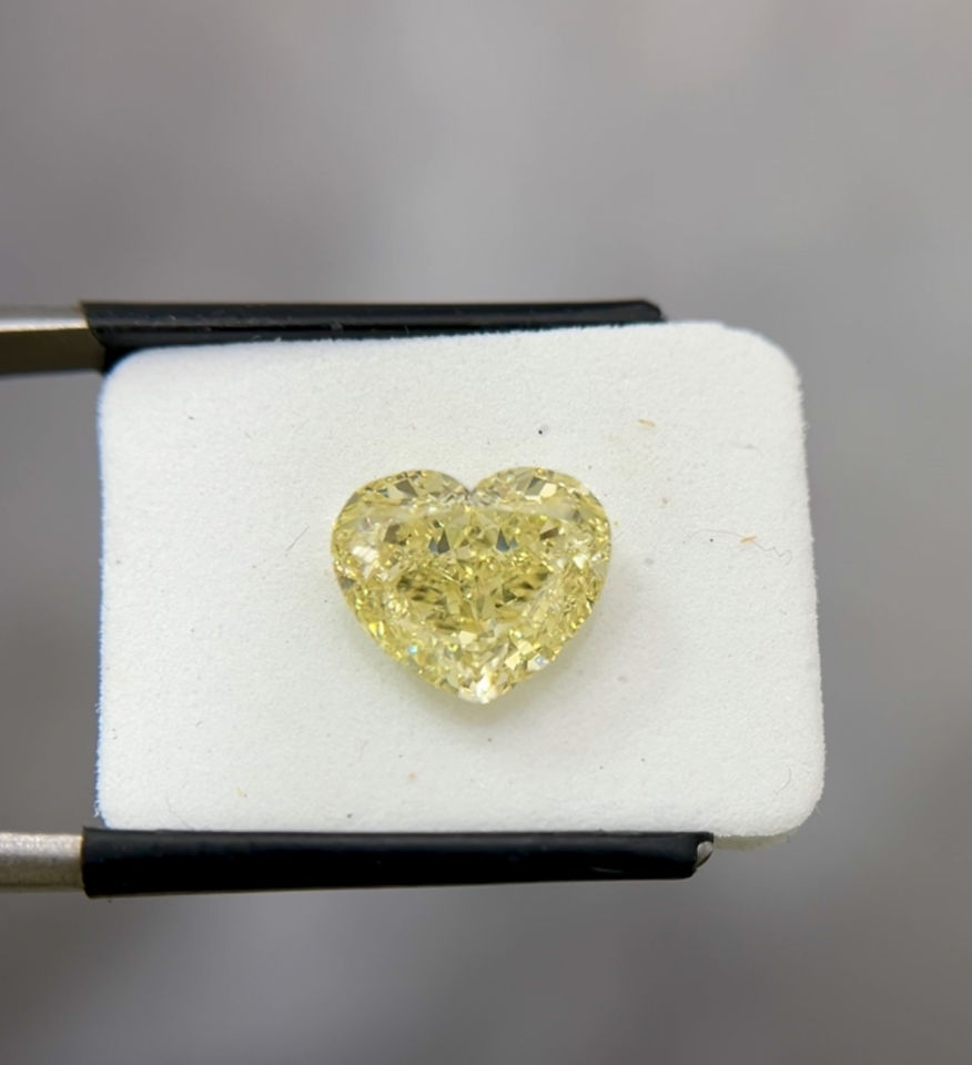 เพชรสีเหลืองแฟนซี ทรงหัวใจ 3 กะรัต VS2 สำหรับเพชรแท้ที่ได้รับการรับรอง พร้อมการขัดเงาแบบ EX และการจัดทรงแบบ VG สำหรับทำเครื่องประดับ