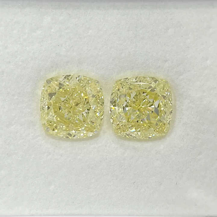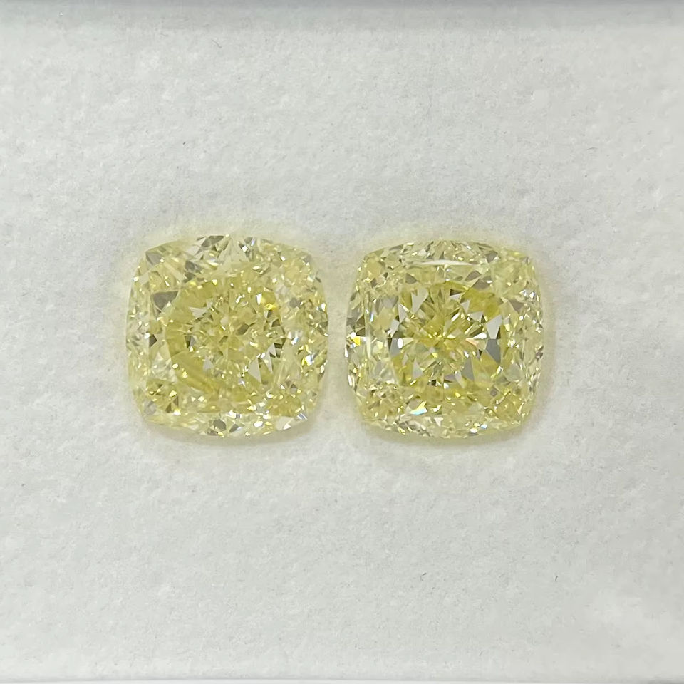 เพชรทรงคุชชั่นสีเหลืองแฟนซี น้ำหนัก 5.01 กะรัต เพชรธรรมชาติแบบเม็ดเดี่ยว ความสะอาดระดับ VS1 ได้รับการรับรอง คุณภาพการเจียระไน EX สมมาตร ไม่มีฟลูออเรสเซนต์ ตารางการเจียระไน 60%