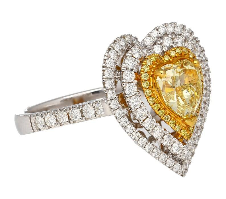 แหวนเงินแท้ 925 รูปหัวใจสีเหลืองแฟนซี ประดับเพชรโมอิสซาไนต์แท้ ดีไซน์วงแหวนสองชั้น ของขวัญเครื่องประดับสำหรับวันเกิด งานปาร์ตี้ สำหรับคนรัก