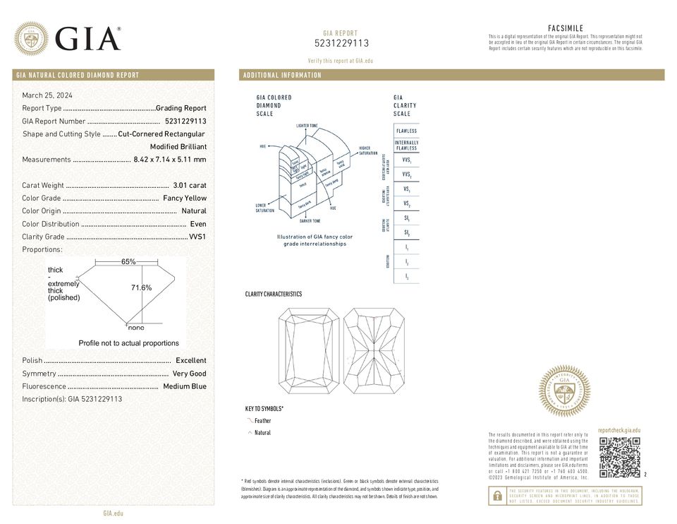 เพชรทรงหลวม3.01กะรัตเพชรธรรมชาติบริสุทธิ์บริสุทธิ์บริสุทธิ์แม้ยาว VVS1สีเหลืองแฟนซีได้รับการรับรองจาก Gia