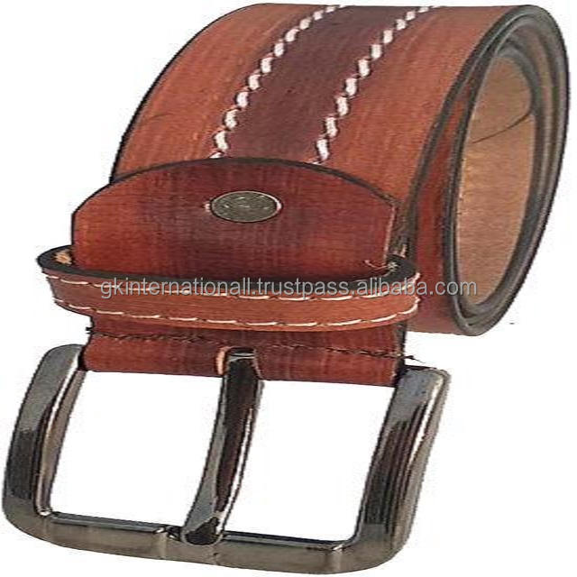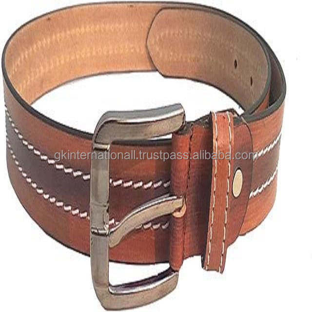 Fancy Custom Design Double Stitched Two Tone Full Grain Men's Designer Leather Casual Belt with Stylish Brass Single Pin Buckle