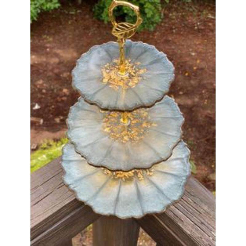 แท่นวางเค้กเรซินระดับสูงแฟนซีพร้อมงานศิลปะจากเรซินนามธรรมช่วยเพิ่มความสวยงามให้กับภาพของขนมพรีเมี่ยม