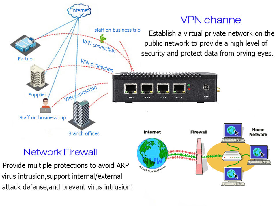 เราเตอร์ซอฟต์แวร์แบบไร้พัดลม J1900 J3160 J3710 J4205 J3455 ไฟร์วอลล์ มินิพีซี พร้อมพอร์ต LAN กิกะไบต์ 4*i211