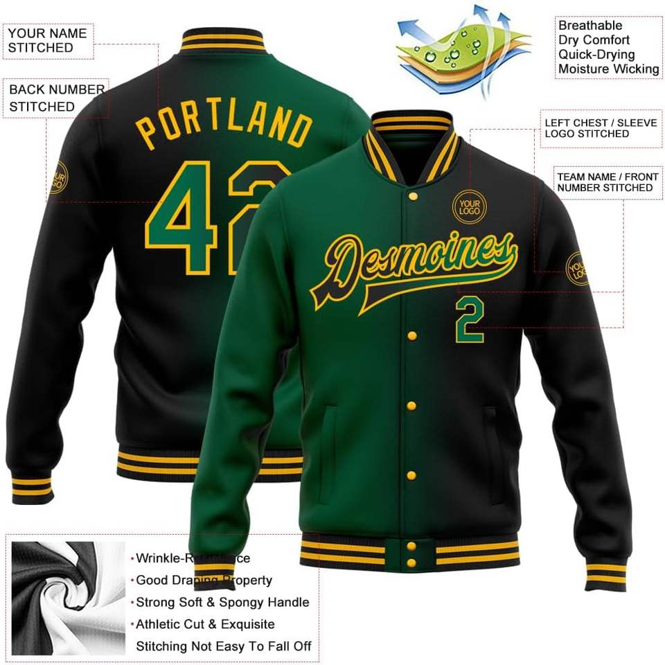 Fanscustom แจ็คเก็ตนักเบสบอลแบบไล่ระดับสีที่กำหนดเองได้แจ็คเก็ตเลตเทอร์แมนของแท้ชื่อโลโก้สำหรับผู้ชาย XS