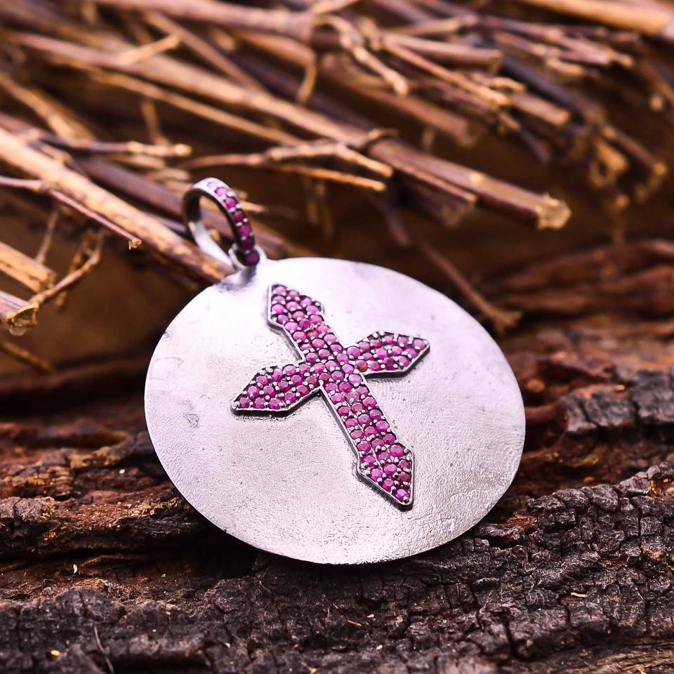 925ยอดเยี่ยมเครื่องประดับเงินสเตอร์ลิงประดับอัญมณีธรรมชาติดีไซน์เนอร์พลอยทับทิมธรรมชาติจี้ไม้กางเขนศักดิ์สิทธิ์ใช้ได้ทั้งชายและหญิงของขวัญทางศาสนา