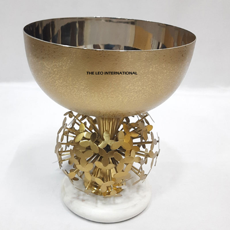 ชามเสิร์ฟช็อกโกแลตของตกแต่งบ้านชามสเตนเลสสตีลขัดเงาสีทองพร้อมฐานหินอ่อน