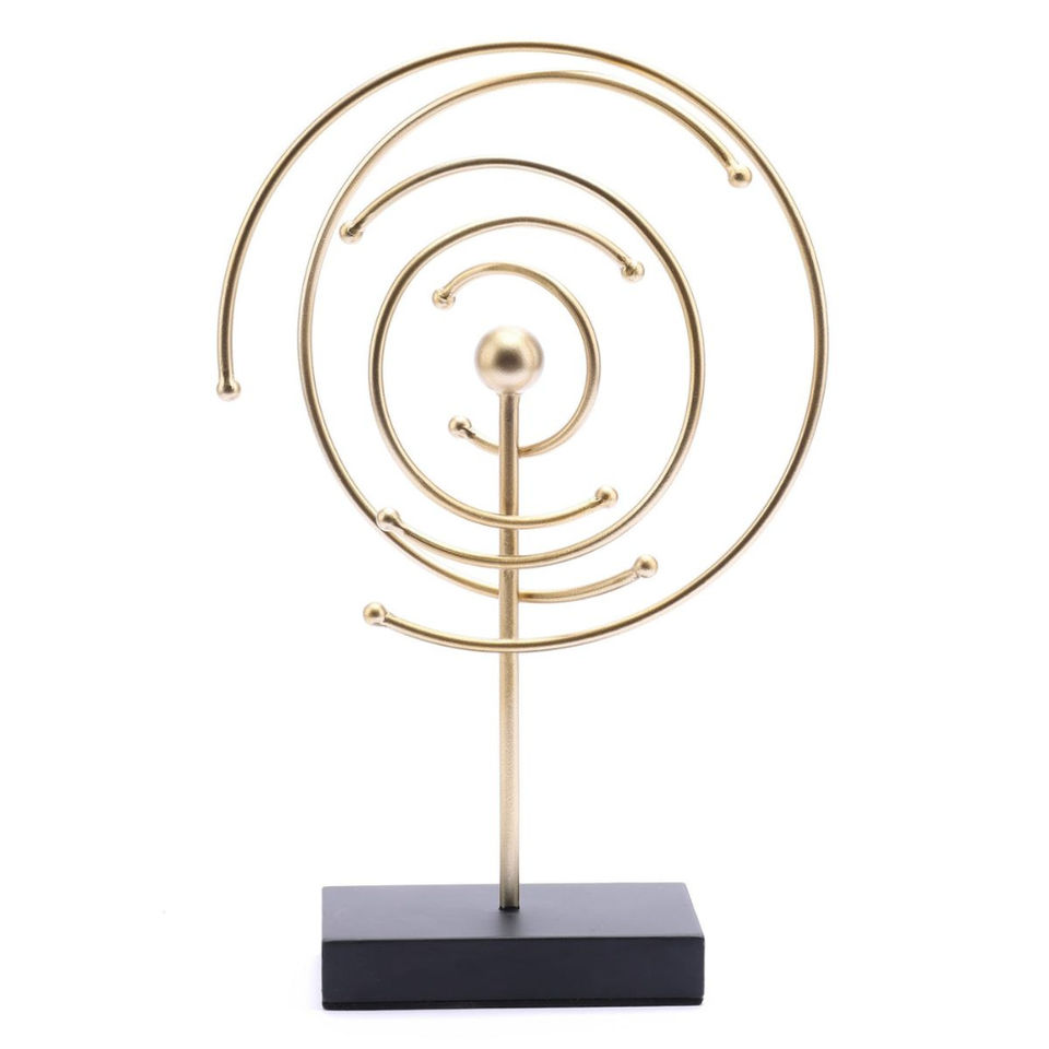 แหวนโลหะสีทองประดับโต๊ะสำหรับตกแต่งสำนักงานการออกแบบที่ยอดเยี่ยมแบบเหล็กรูปทรงเรขาคณิตที่เชื่อมต่อกัน