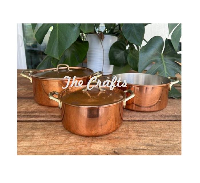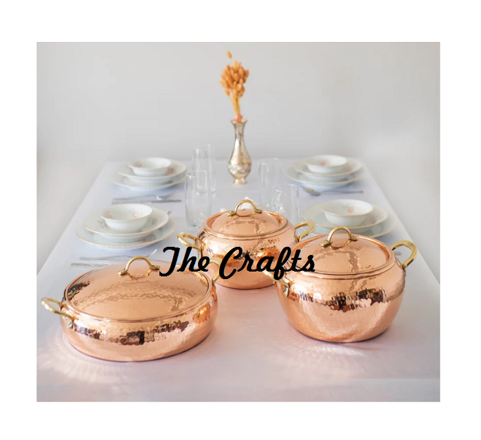 หม้อหุงต้มโลหะคลาสสิก พร้อมหูจับอะลูมิเนียม ดีไซน์ทองแดงตีลายด้วยมือ ราคารวมฝาปิด