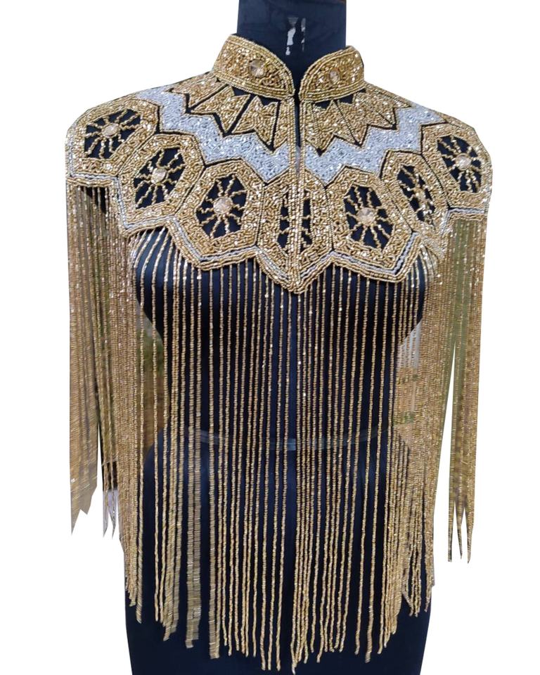 Description:Very Heavy Hand embroidery and shiny hand beaded tassels downside