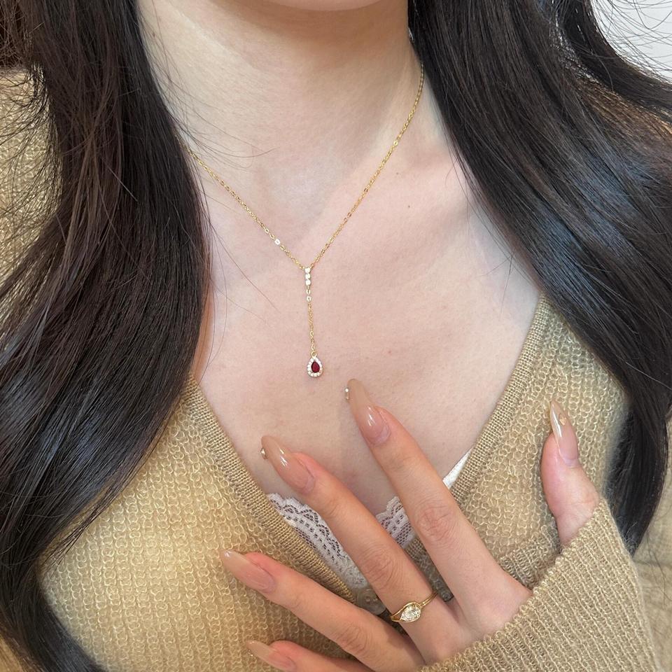 สร้อยคอจี้รูปหยดน้ำมุกขาวออสเตรเลียเงินแท้ S925 พร้อมสายคล้องคอรูปตัว Y