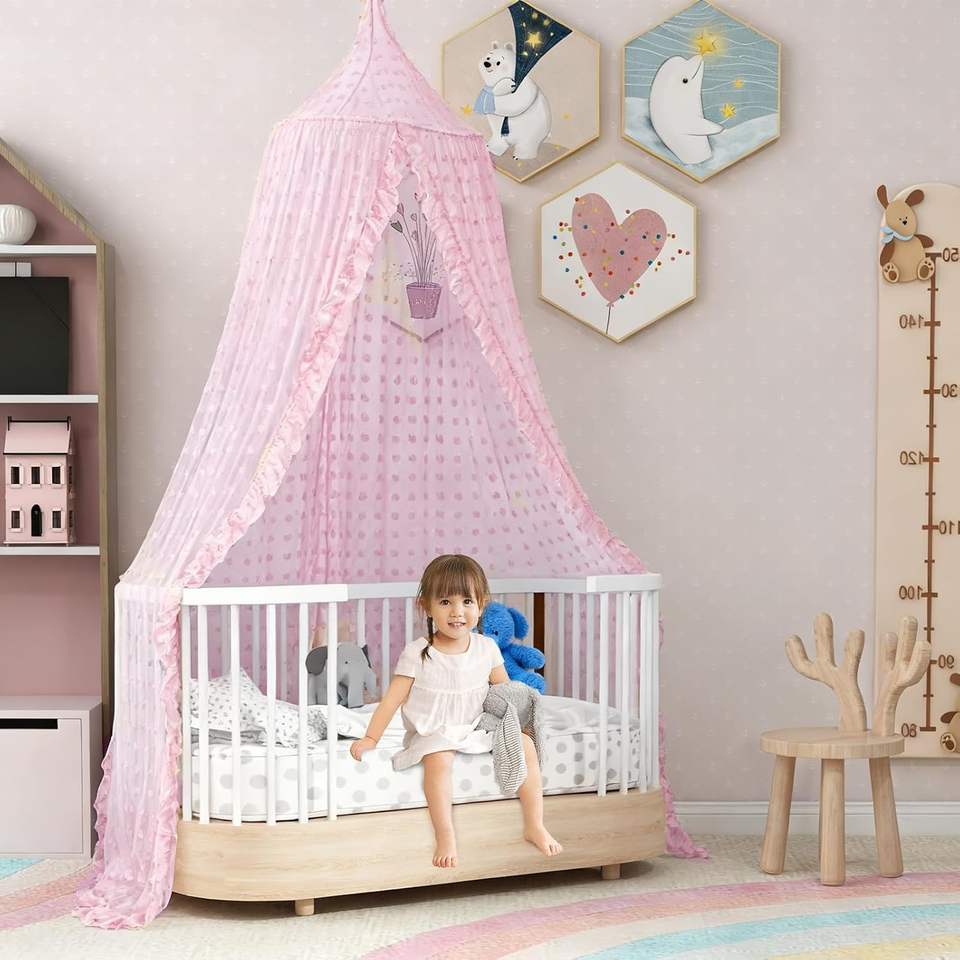 มุ้งคลุมเตียงสีชมพูสำหรับเด็กผู้หญิง