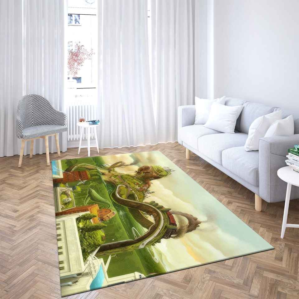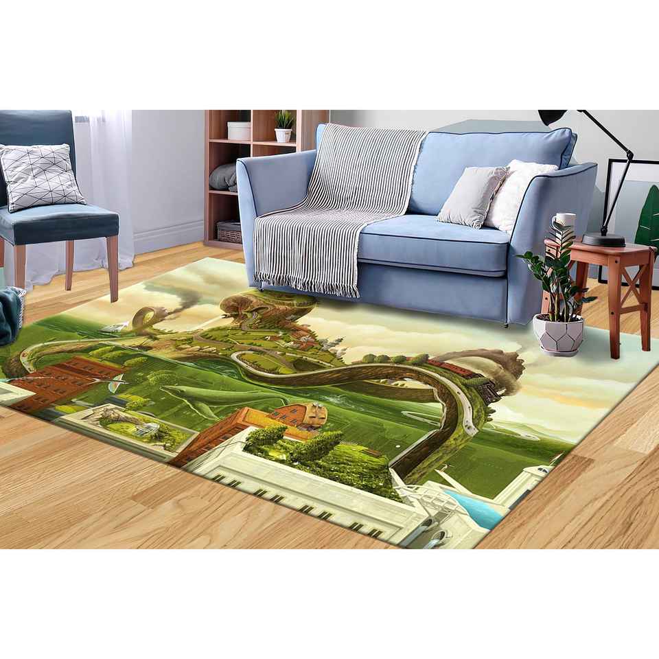 Fantasy Landscape Rug, Whimsical Nature Carpet, Storybook Digital Print Mat,Chenille Rug