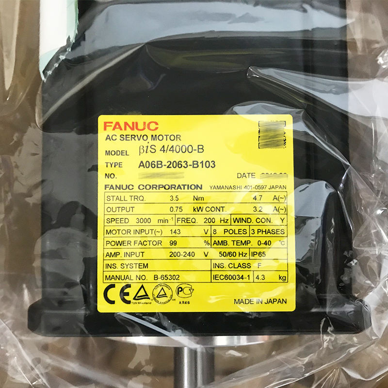 Fanuc A06B-2063-B103เซอร์โวมอเตอร์ AC สำหรับการเขียนโปรแกรม PLC และการควบคุมในอุตสาหกรรม