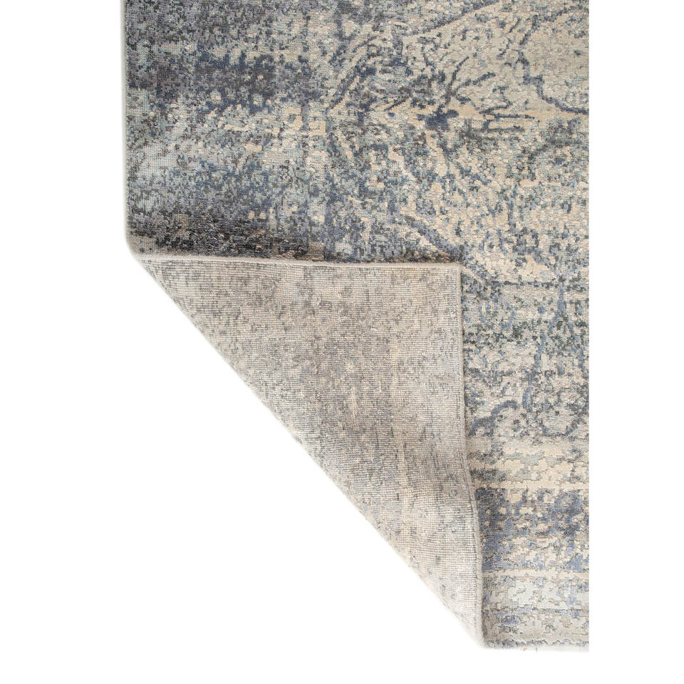พรมขนสัตว์และไหมถักมือลายฟาร์อีสท์ไอวอรี่ รุ่น AKWS-13058 รูปทรงสี่เหลี่ยมผืนผ้าลายเมดัลเลียนแบบจิ๊กซอว์ เหมาะสำหรับห้องโถงและห้องนั่งเล่น