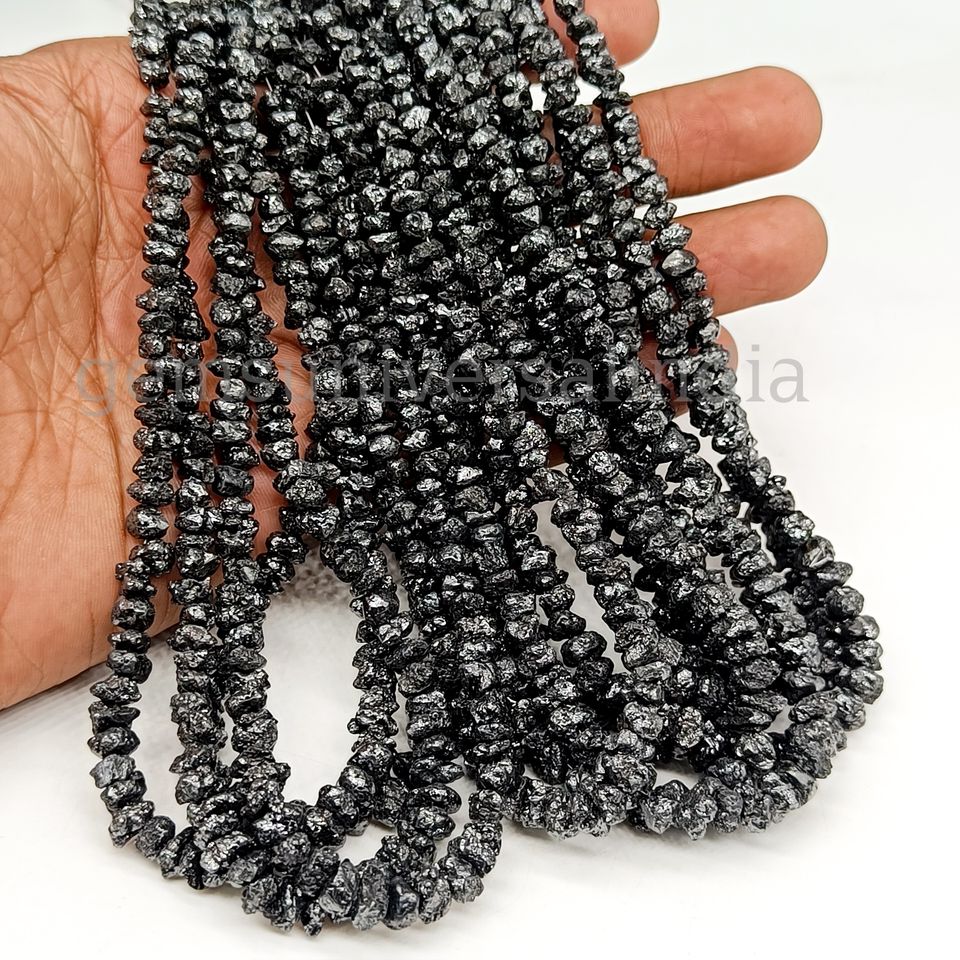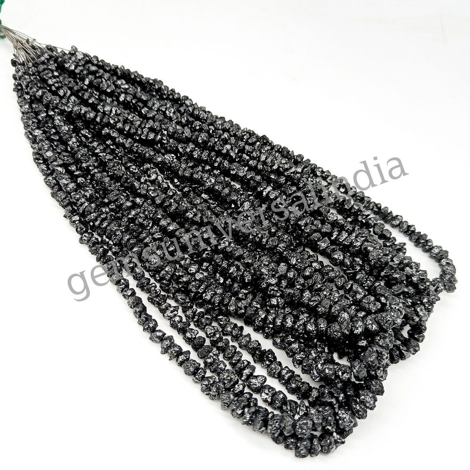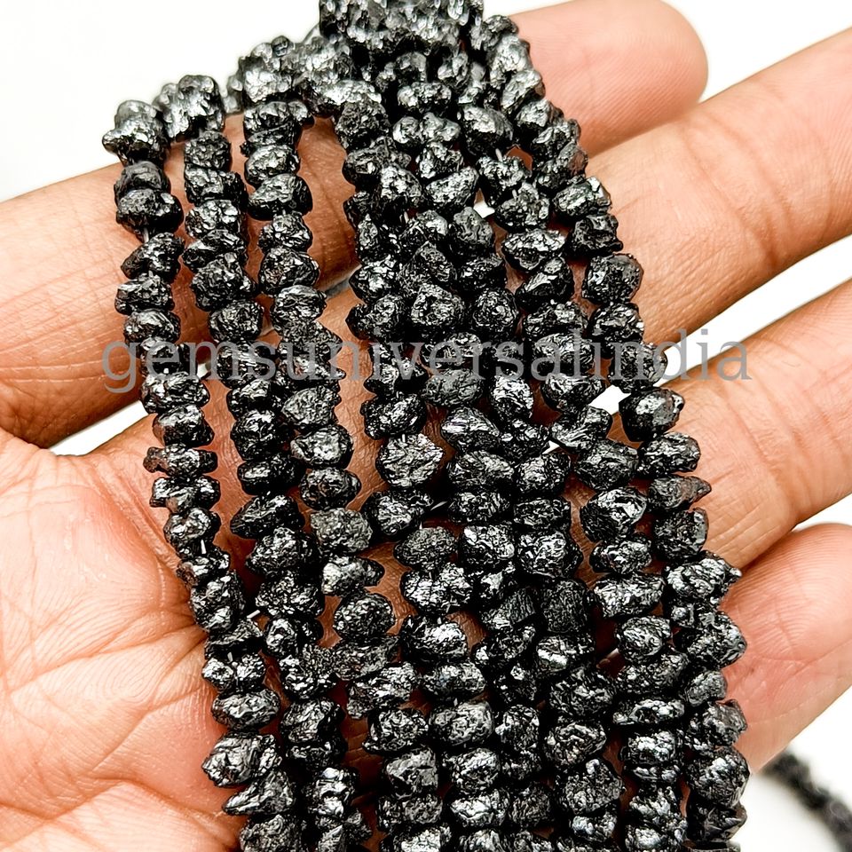 ลูกปัดเพชรดิบสีดำธรรมชาติขนาดใหญ่ 4.5-7.5 มม. ลูกปัดเพชรดิบ ขายส่งลูกปัดเพชรสำหรับทำเครื่องประดับ