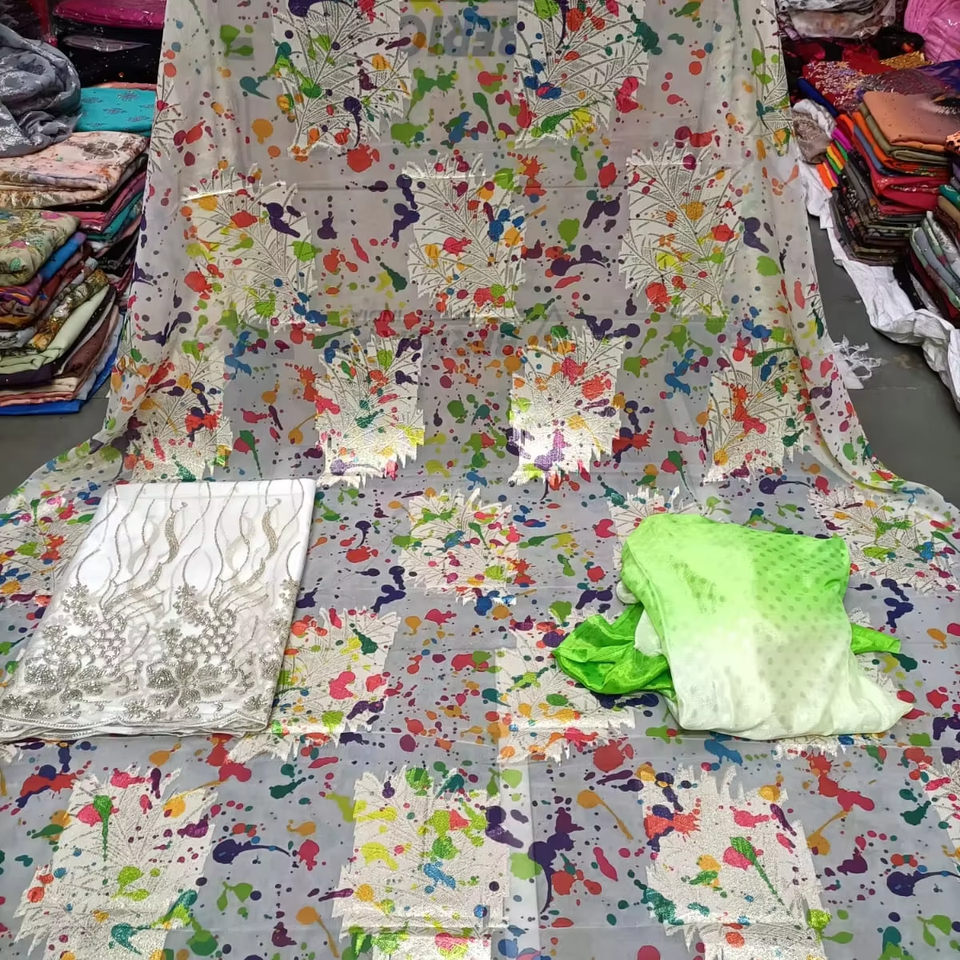 ผ้าไหมพิมพ์ลายหลากสี Faransawi Dirac ประดับคริสตัล 100% สำหรับชุดแต่งงาน ระบายอากาศได้ดี