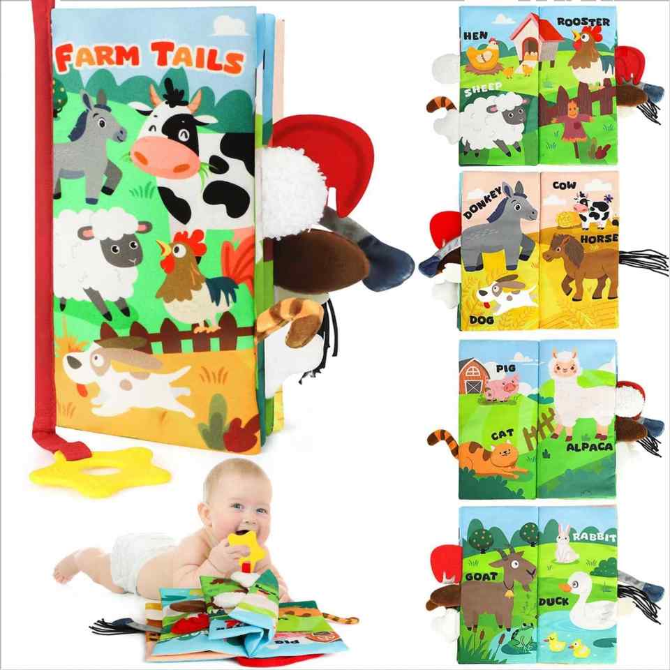 หนังสือผ้าสัตว์เลี้ยงในฟาร์ม หนังสือเสริมพัฒนาการเรียนรู้สำหรับเด็กเล็ก สัมผัส มอง ฟัง เสียงกรอบแกรบ