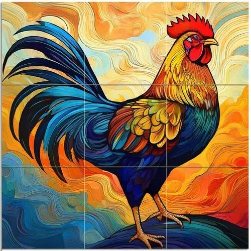 ภาพจิตรกรรมฝาผนังกระเบื้องไก่ในฟาร์มการตกแต่งสวนสำหรับห้องครัวหรือห้องน้ำผนังกั้นอาบน้ำ
