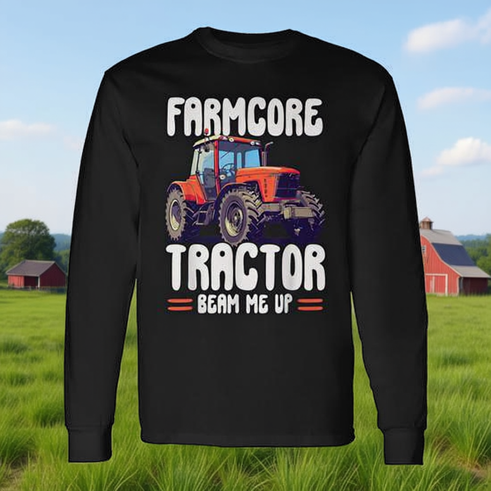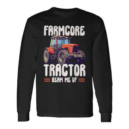 รถแทรกเตอร์การเกษตร Beam Me Up เสื้อยืดแขนยาวดีไซน์วินเทจของชาวนา