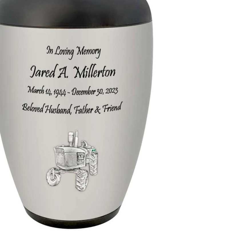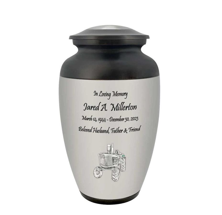 โกศบรรจุอัฐิสำหรับผู้ใหญ่ รูปทรงรถไถนา สำหรับชาวนา งานเกษตร พร้อมสลักชื่อได้ วัสดุอะลูมิเนียม สำหรับงานศพ