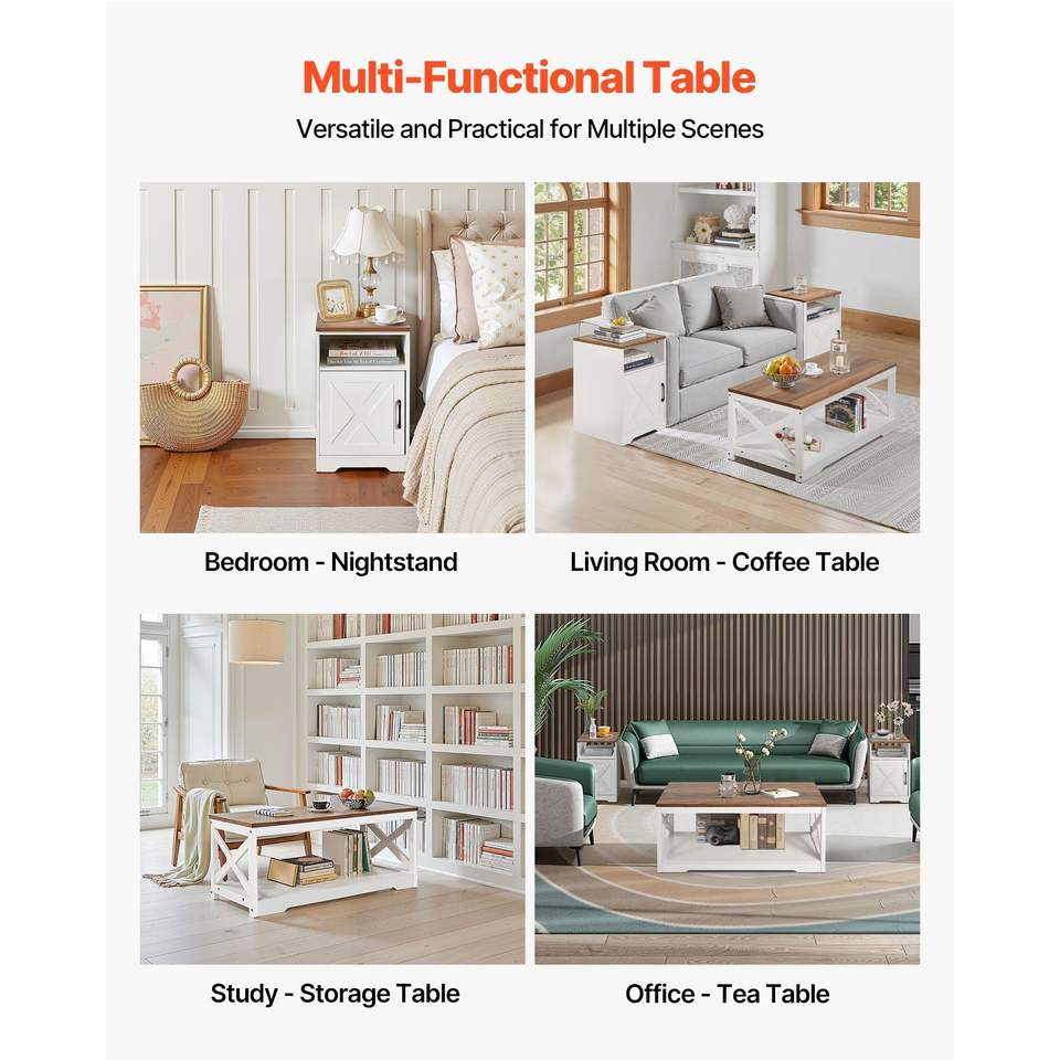 Farmhouse 3-Piece Living Room Set 40-Inch Coffee Table with 2 End Tables