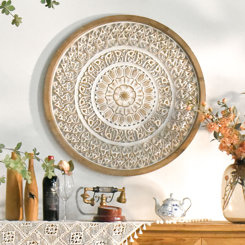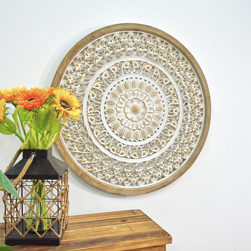 งานฝีมือตกแต่งผนังบ้านสไตล์ฟาร์มเฮาส์ รูปทรงกลม 3 มิติ ทำจากไม้เอ็มดีเอฟ แกะสลักลายศิลปะ สำหรับตกแต่งบ้านช่วงฤดูใบไม้ผลิ